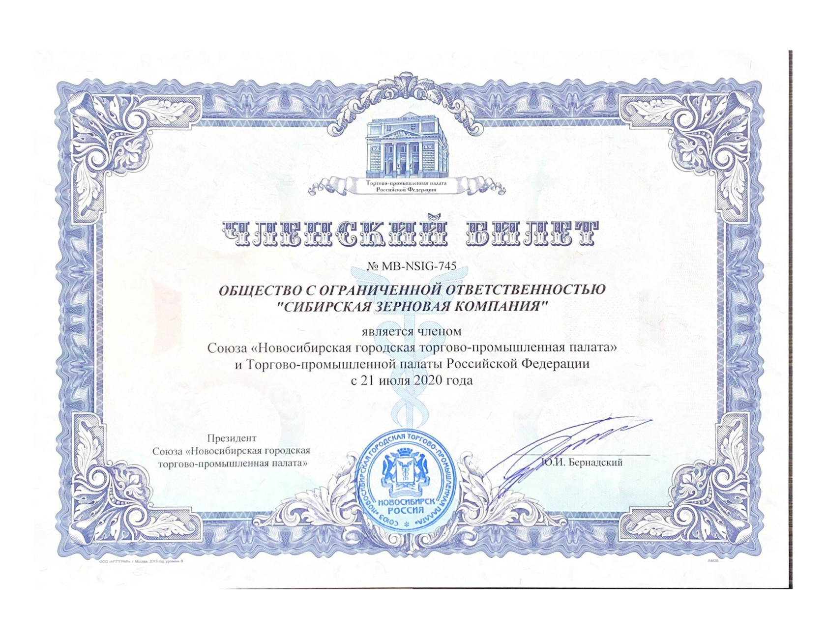 LLC "Siberian Grain Company" is a member of the Union "Novosibirsk City Chamber of Commerce and Industry" and "Chamber of Commerce and Industry of Russia".