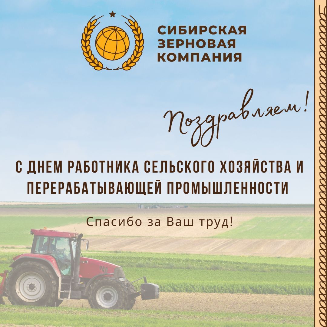 От имени ООО «Сибирская Зерновая Компания Новосибирск» сердечно поздравляем вас с Днем работника сельского хозяйства и перерабатывающей промышленности! Ваш труд играет важную роль в обеспечении продовольственного развития нашей страны.