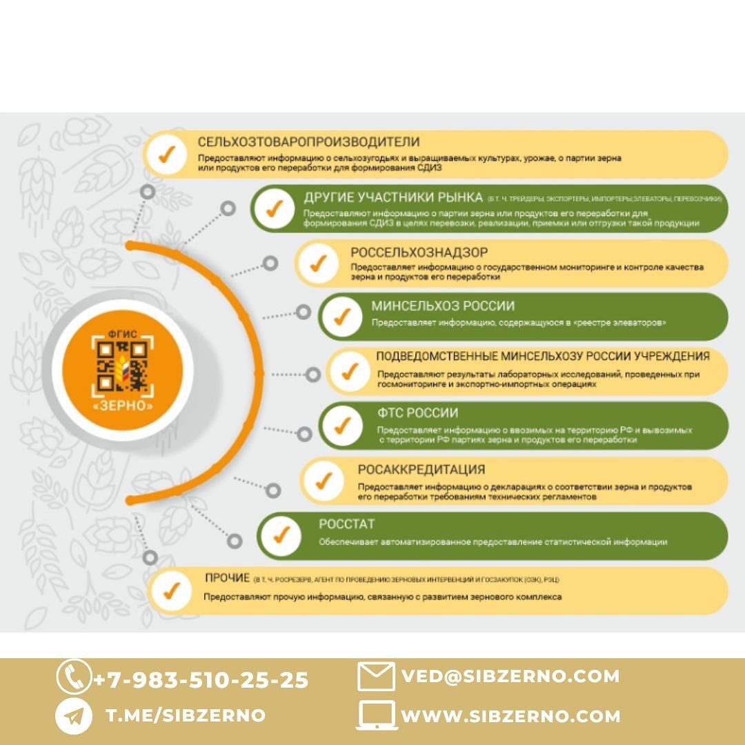 The federal state information system for the traceability of grain and grain processing products is designed to ensure the traceability of batches of grain and products of its processing (for this purpose, shipping documents for a batch of grain or products of its processing - ADGI are issued in the system), as well as to automate the processes of collection, processing, storage and analysis of information related to the production, transportation, sale, storage, processing, processing and disposal of grain and products of its processing in the domestic and foreign markets and when purchasing grain for the intervention state fund. This allows Russian business to work effectively in a transparent grain market, and the state to track the contribution of the regions to ensuring the country's food security.
